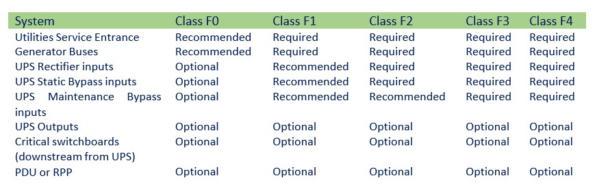 For lower Classes of data centers, SPDs are located at the utility entrance with transients not being addressed further downstream unless the site demands -for-it. For higher reliability Classes, SPDs are prevalent throughout the power system. As the data center Class increases, SPDs may be found in the following locations: