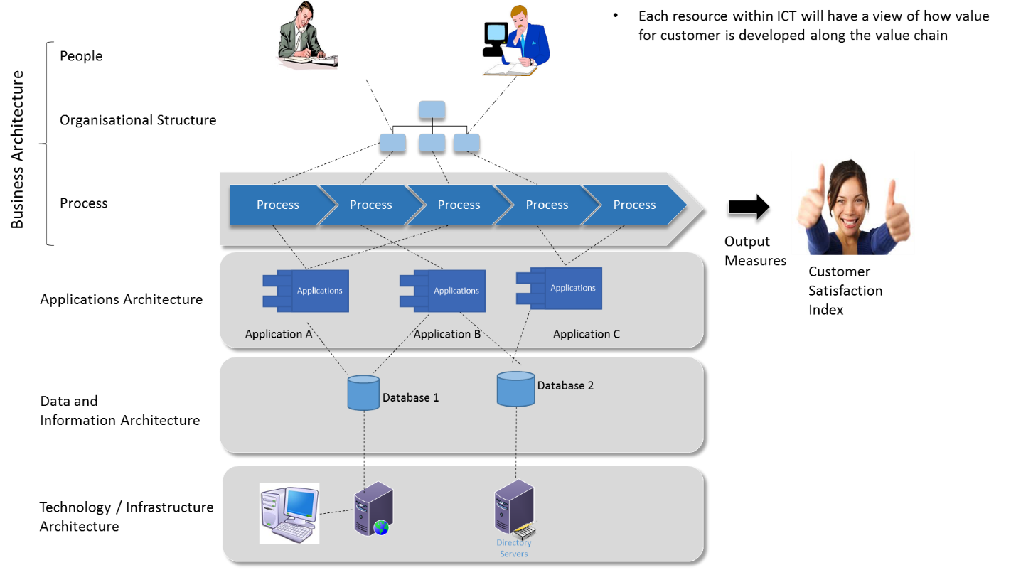 In order to bring alignment between business requirements and IT capabilities, the blueprints are implemented through five (5) domains namely Business, Information, Data, Application and Technology/Infrastructure Architectures. These are commonly referred to as the BIDAT stack.